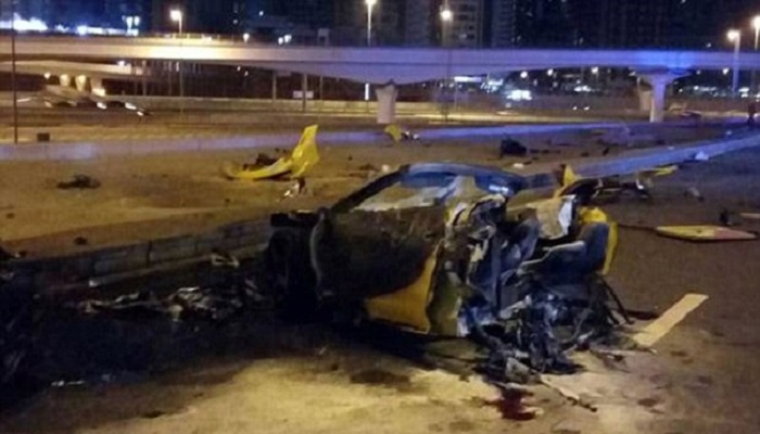 أما في دبي، فأتت صحيفة "الإمارات اليوم" على الحادث، من دون أن تذكر شيئاً عمن كان فيها، سوى أن سائقها كندي، وأن الباقين أوروبيون، وأن "الفيراري" انشطرت إلى نصفين واحترقت إثر اصطدامها بعمود إنارة في منطقة أبراج بحيرات جميرا، ناقلة عن مدير الإدارة العامة للمرور، العقيد سيف مهير المزروعي، أن سرعة الشارع الذي مرت فيه السيارة لا تتجاوز 60 كيلومتراً في الساعة، وفيه منحنيات كثيرة، إلا أن سائقها "كان يقودها بسرعة جنونية" كما قال.