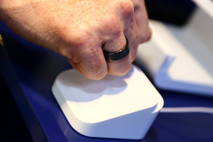 ويعتمد الخاتم تصميما بعلامة NFC Ring® المسجّلة التي تتضمن شريحة صغيرة آمنة من تصنيع شركة جيمالتو.