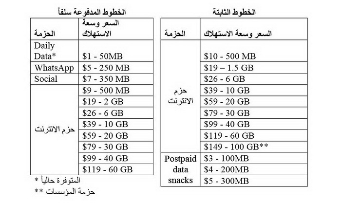 وفي ما يلي الحزم الجديدة وأسعارها: