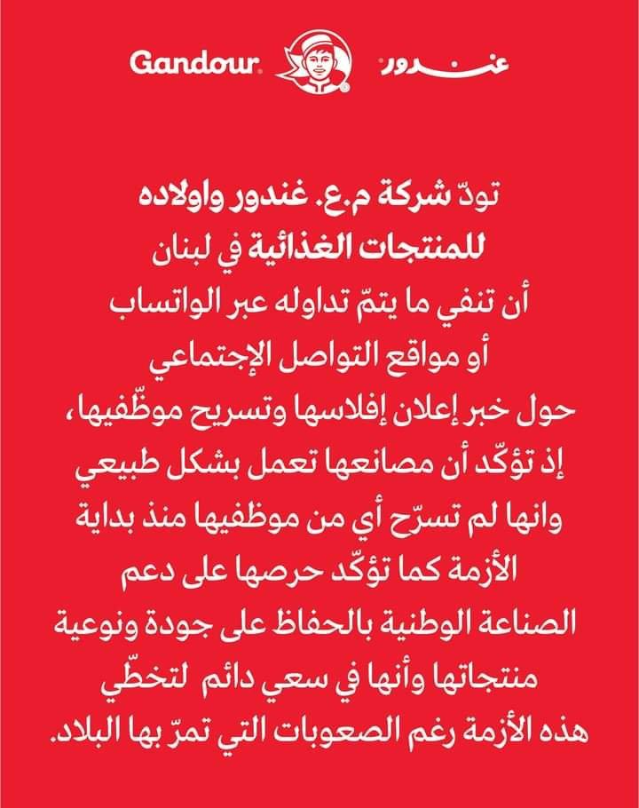نفت شركة غندور، ما يتم تداوله عبر مواقع التواصل الاجتماعي عن إعلان الشركة إفلاسها وتسريح موظفيها.