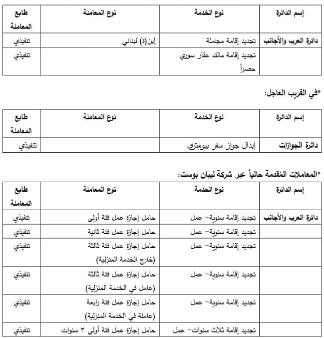 أعلنت المديرية العامة للأمن العام أنه ابتداءً من 15 تشرين الأول 2025، ستباشر شركة "ليبان بوست" باستقبال المعاملات الجديدة العائدة للأمن العام، وذلك وفقاً للجدول الآتي: