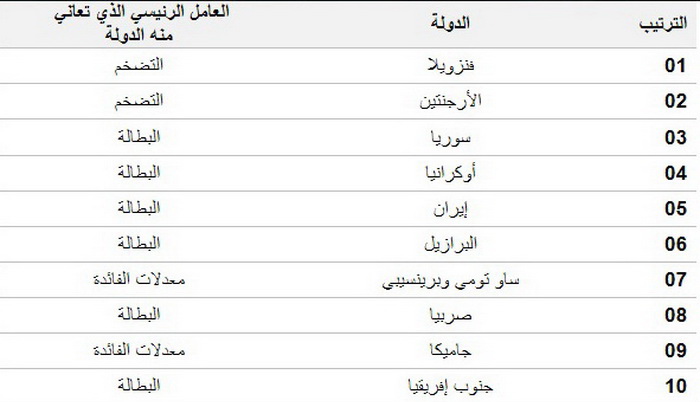 وفيما يلي قائمة الدول الأكثر بؤساً في العالم :