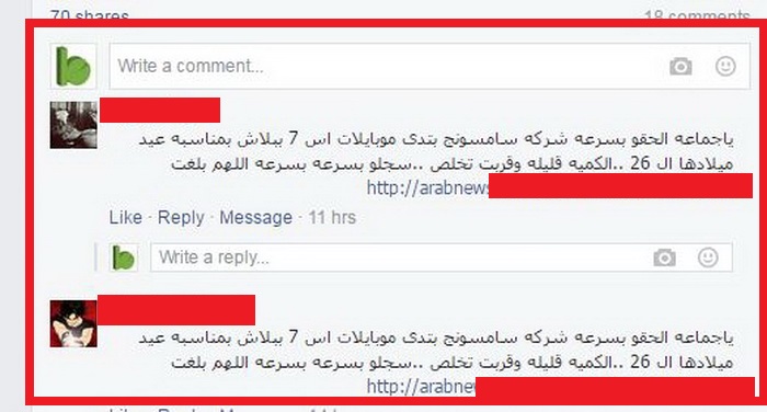 وتداول عدد كبير من مستخدمي شبكات التواصل الاجتماعي هذا الخبر على شكل رابط تم نشره في شكل غير مسبوق منذ صباح البارحة، وحثوا من خلاله بقية المستخدمين للإسراع بالدخول الى الرابط، للحصول على هاتف غالاكسي إس 7 إيدج مجاناً.