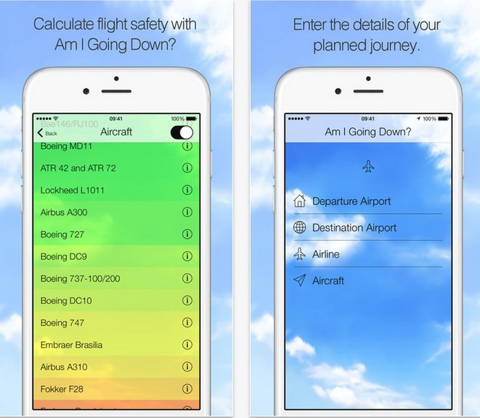 وقال مصمم التطبيق نيك جونز، ان "? Am I Going Down" يقوم بتحليل أكثر من 10 ملايين مسار للطائرات، وأنه يعتمد فى التوقعات والاحتمالات على معلومات من أرشيف مكتب حوادث الطائرات في جنيف، والمجلس الوطني لسلامة النقل الأميركي، بالإضافة إلى منظمة الطيران المدني الدولي.