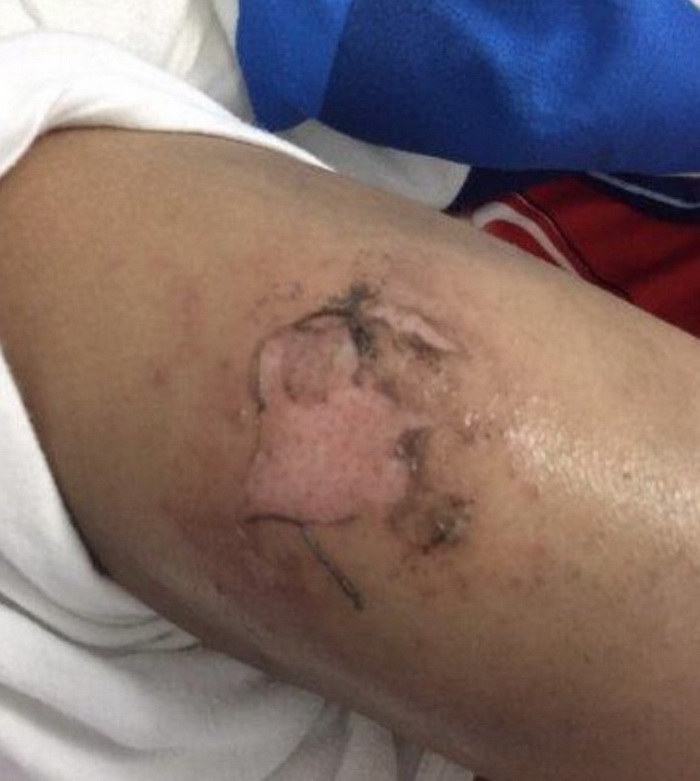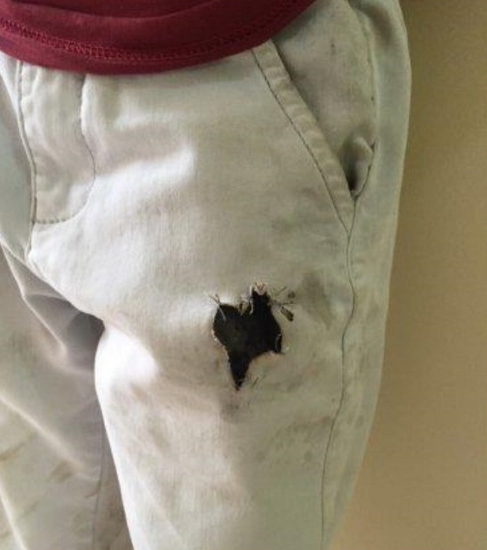 وكان الطفل عبدالله بن خالد قد وضع الهاتف في جيب ملابسه الرياضية، قبل أن ينفجر فجأة وتتطاير محتوياته بعد اختراقها البنطلون.