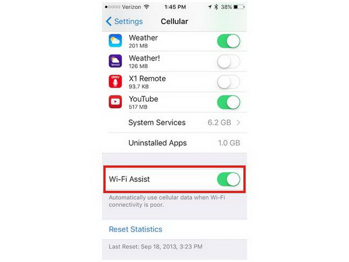 وتأتي الميزة مفعّلة بشكل افتراضي في نظام ios9، ويمكنكم ايقافها من خلال التوجه الى setting ثم cellular ومن ثم اطفاء Wi-Fi Assist.