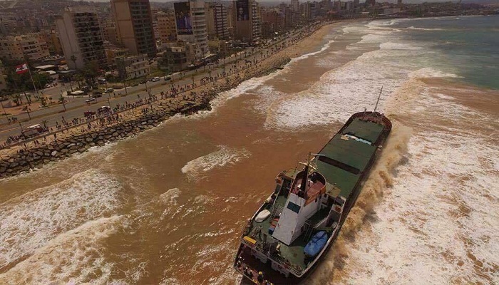 وقد انتشرت القوى الامنية وعناصر الدفاع المدني على الشاطىء ويجري التواصل مع قبطان الباخرة وطاقمها لسحبها من الرمال وإعادتها الى البحر.