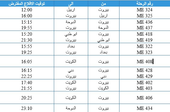 تشغيل رحلة اضافية الى لارنكا تقلع في تمام الساعة الثامنة مساءاً بالتوقيت المحلي لمدينة بيروت