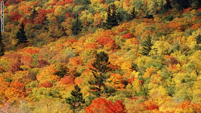 14- أميركا : تكتسي غابات وايت ماونتينز، في نيوهامشير في اميركا حلة من ألالوان المختلفة خلال فصل الخريف.