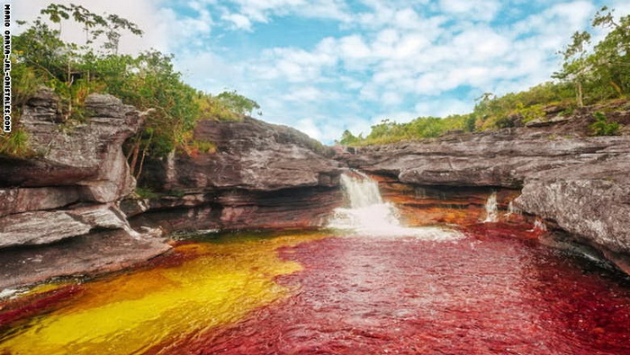 3- كولومبيا: يمتد نهر كانو كريستاز أو المعروف بقوس قزح السائل بألوان متضاربة وساطعة مرة كل عام بين شهري تموز يوليو وتشرين ثاني نونفمبر، إذ تظهر أنواع من الطحالب الملونة في هذا الموسم.
