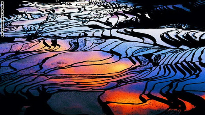 5- الصين: إن حقول الأرز في مقاطعة يانيانغ الصينية تعكس ما حولها لتبدو كالمرآة، ومع الطبقات المتعددة لتلك الحقول، فإن كلا منها يعكس وجها مختلفا للطبيعة المحيطة لتخلق جميعها لوحة تسلب القلوب.