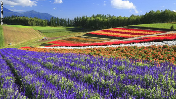 8- اليابان: تمتد حقول من الزهور المختلفة الألوان على جزيرة هوكايدو اليابانية، ويمكن للزوار أن يستمتعوا بها خلال فترة الصيف، مع فرصة للتخييم وسط أزهار مثل اللافندر والتوليب الممتدة على تلال الجزيرة.