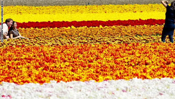 13- هولندا :يتوافد السياح إلى هولندا كل عام لمشاهدة أزهار التوليب المتنوعة التي تشتهر بها البلاد، ويعتبر منتصف شهر نيسان ابريل أفضل وقت لزيارة هذه الحقول.