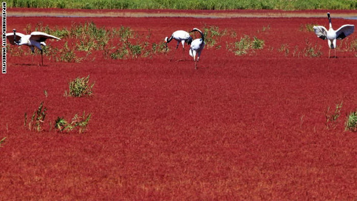 12- الصين: يطلق على نهر ليوهي في محافظة بانجين الصينية وصف الشاطئ الأحمر، سبب اللون الناتج عن نوع من الطحالب التي تزدهر في تربة المنطقة، ويمكن زيارة المنطقة لرؤية اللون الأحمر في أبهى درجاته خلال فصل الخريف.